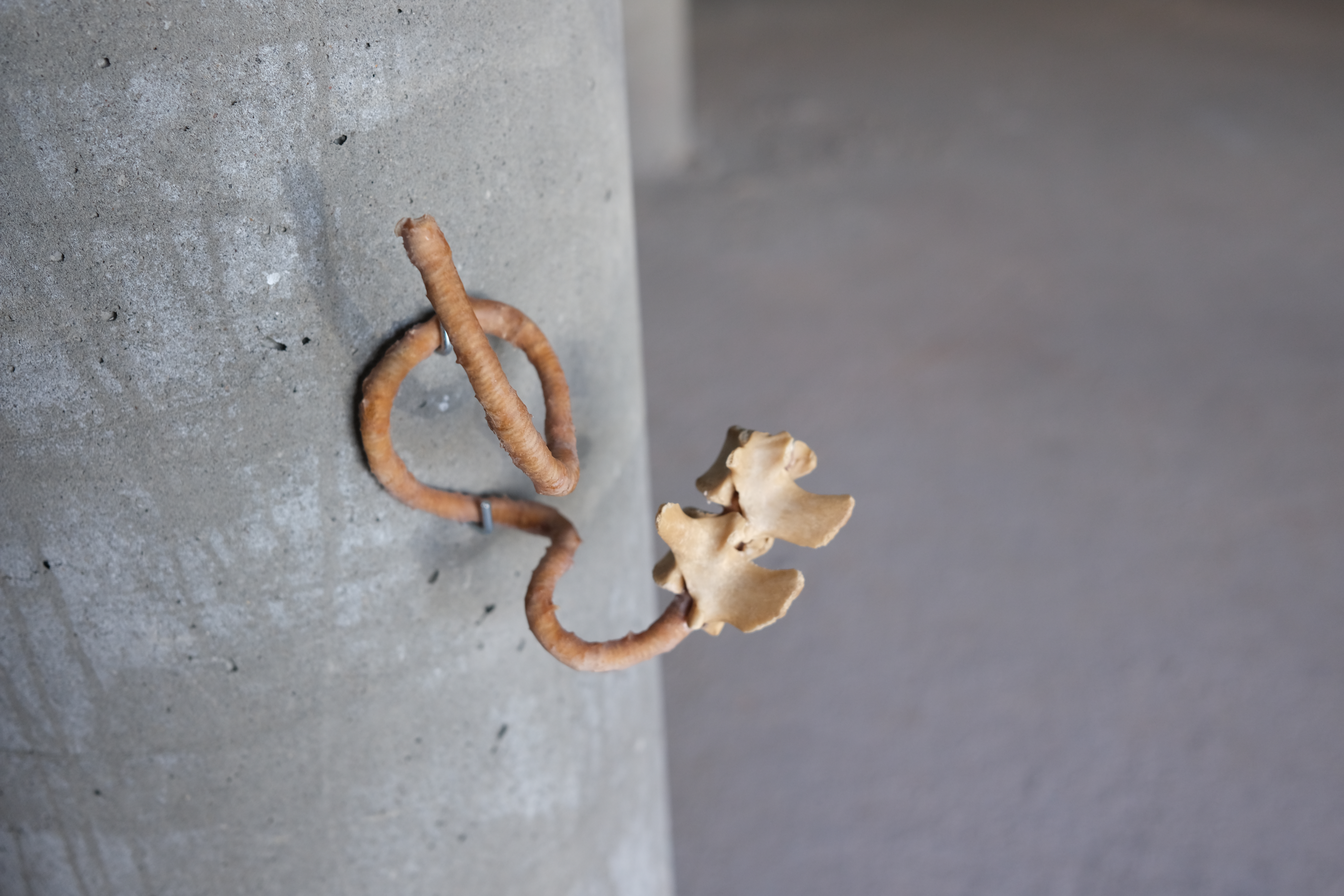 Small sculptures made of repurposed metal, hemp sting, sheep bone and latex. From the exhibition Lunglike Shadows curated by Sunna Dagsdóttir.
